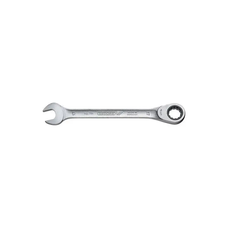 Konstrukce: Vyrobeno z vanadové oceli GEDORE 31CrV3. Matně chromovaná, rovného tvaru, s praktickým a silným pasem. Mangan-fosforovaná pojistná vložka a západka. Nízký počet zubů činí západku extrémně robustní, zatímco speciální geometrie západky zajišťuje velmi malý úhel resetu. Úhel resetu 7° pro velikost klíče 15 mm, 6° pro velikost klíče 27 mm a 5° pro velikost klíče 36 mm. Poloha čelistí 15°, broušené přesně podle velikosti klíče. Krouticí momenty překračují specifikace podle DIN 3113.