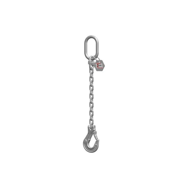 Jednovláknový řetězový závěs se speciálním kvalitním řetězem - Robustní konstrukce Řetězový závěs s jedním pramenem a zátěžovým hákem, pracovní délka 1000 mm. - Třída 6 Nerezová ocel INOX. Povrchy závěsných kroužků a kruhových ocelových řetězů jsou otryskané.