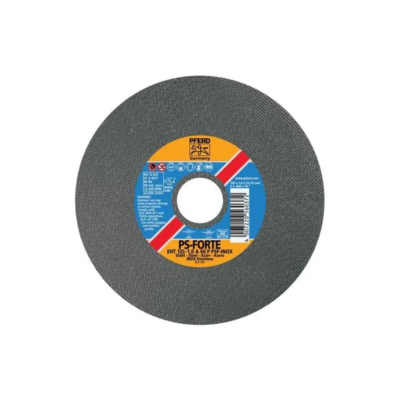 Použití: Ideální pro řezání plechů, profilů a plných materiálů z oceli a nerezové oceli. Tenké řezné kotouče (tloušťka 1,0-1,9 mm) jsou ideální pro rychlé, pohodlné a málo otřepné řezání a kotouče o tloušťce 2,4 a 2,5 mm pro univerzální řezání.