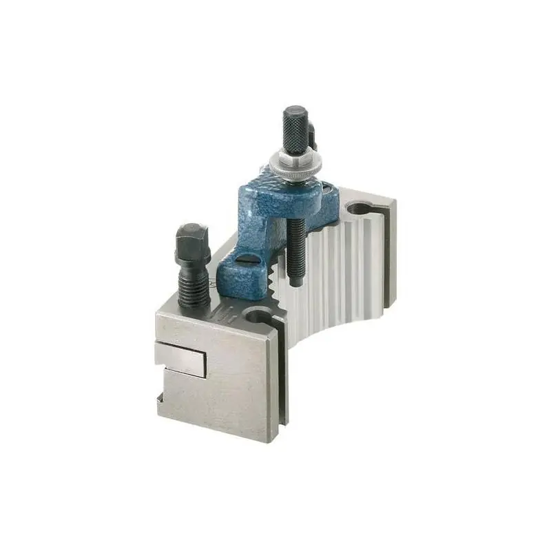 Design: Rychlovýměnné ocelové držáky nabízejí výhodu neomezené všestrannosti. Umožňují mnohem rychlejší výměnu nástroje než u čtyřnásobného držáku a zaručují opakovatelnost menší než 0,01 mm po celá léta. Broušené ozubení ve středovém tělese a ve výměnných držácích umožňuje 40 různých poloh upnutí. Hlava držáku nástrojů může pojmout libovolný počet kazet se soustružnickými a vrtacími ocelemi za sebou. Použití: Rychlovýměnné ocelové držáky jsou vhodné pro použití na konvenčních i CNC soustruzích s ruční výměnou nástrojů.