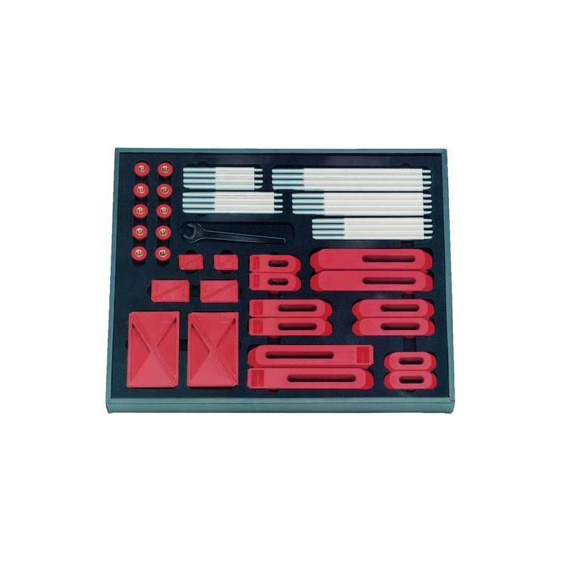 Provedení: Sada z plastu, skládající se z 55 prvků. Upínací drápky, podložky a matice z vysokopevnostního plastu PBT, červené.