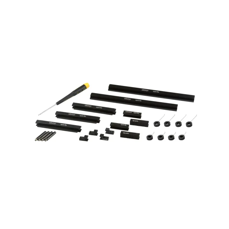 This opti-fix modular fixturing kit, consisting of 26 parts can be used for the construction of a basic frame with the dimensions of 200 mm x 100 mm, for fixing parts with a simple part geometry.Fastening brackets, vacuum plates or magnetic holders for mounting the clamping system on the measuring machine, please order separately.Scope of delivery