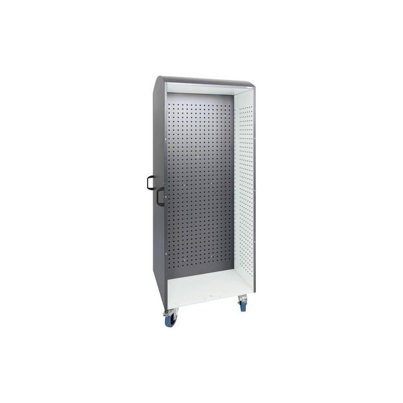 Čisticí centrum neo+ CC 1 - Robustní průmyslová kvalita Kompletně svařovaná konstrukce z ocelového plechu. Zadní strana volitelně otevřená nebo s kontrolními okénky. Zapuštěné perforované stěny lze použít na obou stranách pro háčky a příslušenství. - Ergonomická rukojeť Pro praktickou manipulaci. - Necitlivý povrch odolný proti nárazu a poškrábání. Texturovaná a práškově lakovaná karoserie v antracitově šedé barvě RAL 7016, okenní dveře a vnitřní plochy ve světle šedé barvě RAL 7035, nápis "Cleaning Center" v signální barvě. - Pozinkované oboustranné police Lze je použít jako odkládací nebo přihrádkové police. - Kolečka Ø 125 mm, robustní průmyslová kvalita, odolná proti oděru, s modrou elastickou pevnou gumovou bandáží, 2 pevná a 2 uzamykatelná otočná kolečka. - Technické údaje Rozměry ŠxVxH: 700x650x1950 mm. Celkové zatížení: 600 kg. - Vybavení Základní provedení s perforovanou, dovnitř posunutou středovou přepážkou. Pro umístění hákových systémů a čisticích zařízení.
