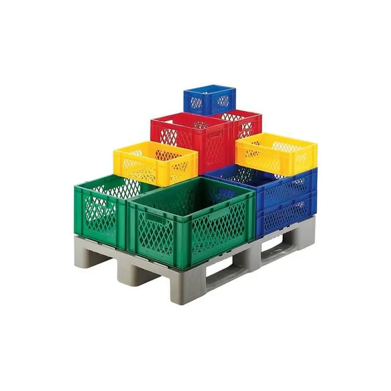 Přepravní stohovací box, stěny a dno perforované, žlutý