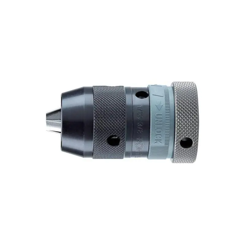 Konstrukce: Nárazuvzdorné a samosvorné sklíčidlo s plochými čelistmi, se závitovým nebo kuželovým uchycením, bez klíče a samosvorné. Použití: Pro ruční příklepové vrtačky a vrtačky do 1300 W. Poznámka: Vhodné pro otáčení proti směru hodinových ručiček až do maximální hodnoty 15 Nm.
