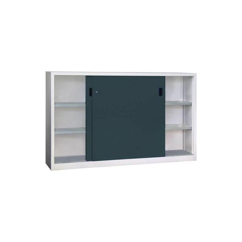Skříň s posuvnými dveřmi vysoká 1200 mm, korpus RAL 7035/dveře RAL 7016 - Pevná svařovaná konstrukce z ocelového plechu - Dveře S vyztuženými kapsami, speciálními kolečky s kuličkovými ložisky a otočným cylindrickým zámkem. Na vyžádání je k dispozici s kontrolním okénkem. - Police Pozinkované a výškově nastavitelné v krocích po 17 mm. Nosnost 80 kg na polici s rovnoměrně rozloženým zatížením. - Vysoce kvalitní práškové lakování