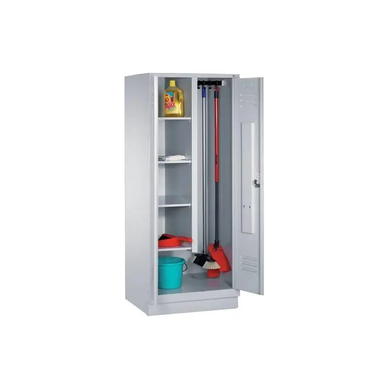 Víceúčelová skříňka řady Classic se 100 mm vysokým soklem, výška 1800 mm, světle šedá/enziánská modrá