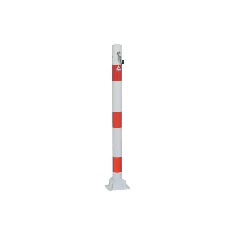 Sloupky zábrany (oboustranné a s uzamykacím systémem) se základovou deskou pro hmoždinky, žárově zinkované bez ok, potažené 3 reflexními proužky