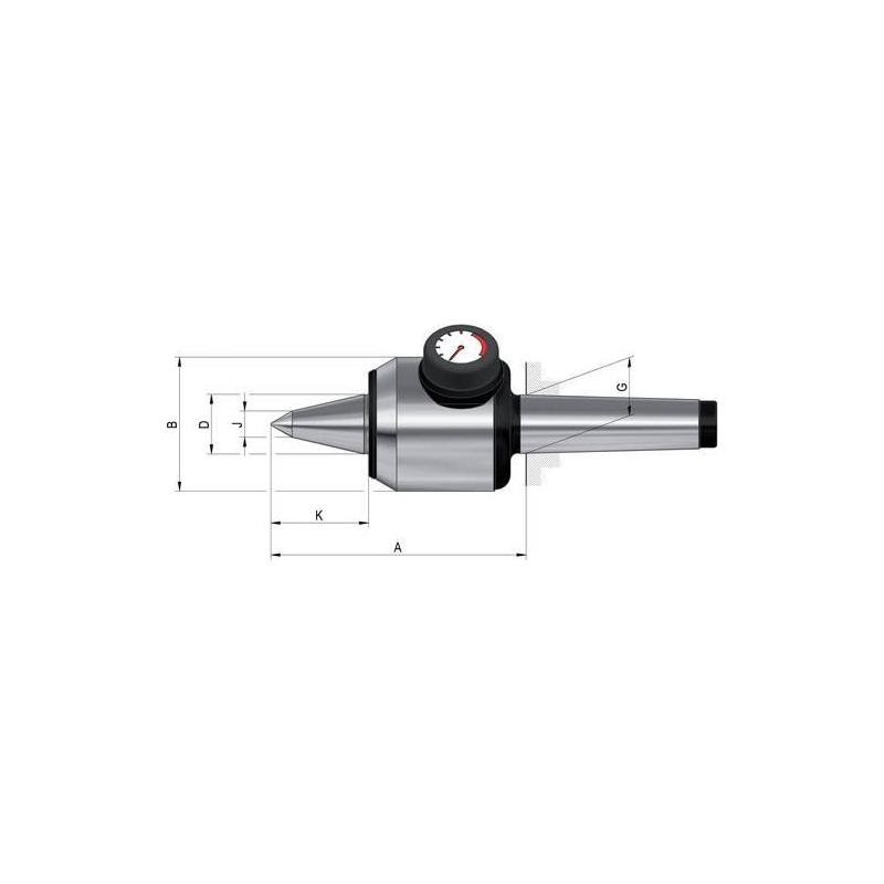 Otočný středící hrot s prodlouženým hrotem a indikátorem tlaku