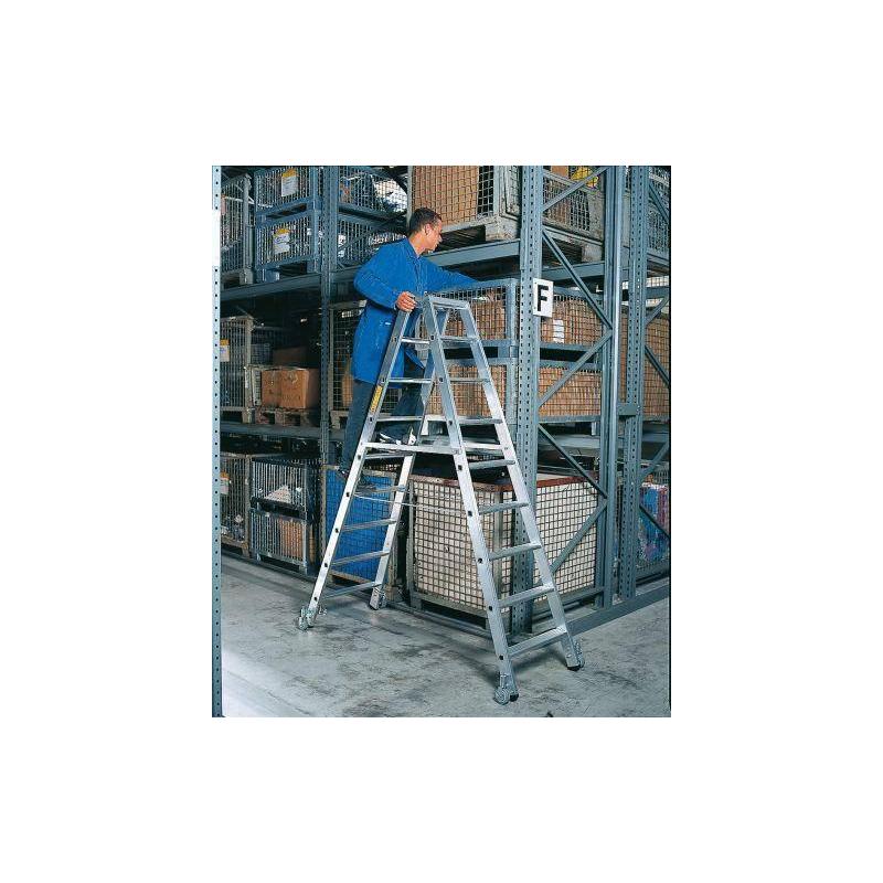 Hliníkový žebřík, oboustranný přístup, s kolečky