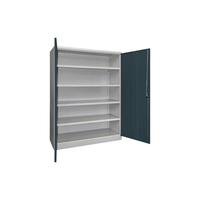 Velkokapacitní těžká skříň, nosnost police 200 kg - Nosnost skříně 1300 kg Pevná svařovaná konstrukce z ocelového plechu. - Práškově lakované police Nosnost na jednu polici 200 kg při rovnoměrně rozloženém zatížení. Nastavitelná výška v krocích po 25 mm. - Dveře s výztužnými kapsami Úhel otevření dveří 180°. - Bezpečnost a zabezpečení Otočná rukojeť s tříbodovým zamykáním a integrovaným zámkem vložky. - Vysoce kvalitní práškové lakování Karoserie ve světle šedé barvě RAL 7035. Dveře na přání v barvách RAL 7035 světle šedá, RAL 5010 hořcová modř, RAL 5012 světle modrá a RAL 7016 antracit.
