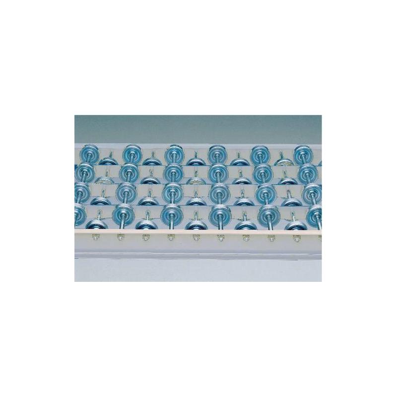 Nápravy jsou navíc podepřeny centrálními příčníky. Na přání s kuličkovými ložisky, pozinkovanými ocelovými koly (Ø 48 mm) nebo modrými plastovými koly (Ø 48 mm).