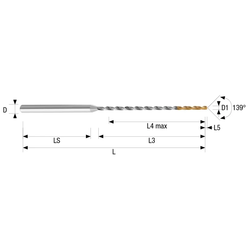Zobrazit všech 20 variantUniverzální vrták KenDrill Micro 30xD, ze slinutého karbidu, s vnitřním chlazením, válcovou stopkou a povlakem TiN
