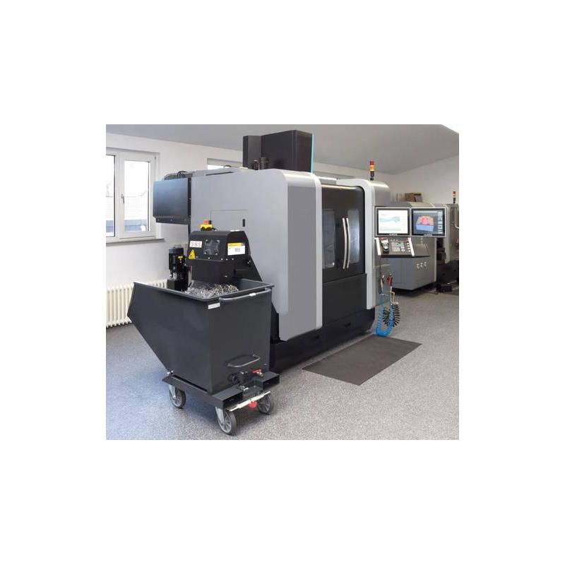 Sklápěč, antracitově šedá RAL 7016. - Robustní konstrukce. Výklopný žlab z ocelového plechu o tloušťce 2 mm. Horní okraj dvakrát přeložený, dvakrát přeložený přes nalévací okraj, svařený na olej. Základní rám z 3 mm silných okrajových profilů s integrovanými kapsami pro vysokozdvižné vozíky. - Bezpečné zacházení. Nebezpečná a pohodlná manipulace díky trubkové rukojeti, nášlapné desce a zařízení proti překlopení. - Pojízdný a pro provoz vysokozdvižných vozíků - s funkcí TOTALSTOP. 2 otočná a 2 pevná kolečka, brzdy na otočných kolečkách, v souladu s normou EN 1757-3. - Dumping. Proces vyklápění se spouští ručně. Pružné plné pryžové pneumatiky 200x50 mm, modrošedé bezkolejové, náboje s kuličkovými ložisky.