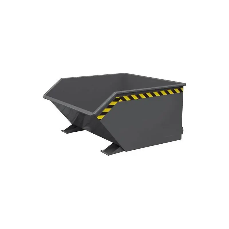 Výklopný kontejner s automatickým odvalováním, RAL 7016 - Nízká celková výška Ideální pro použití jako pomocná nádoba na strojích. - Perfektní úhel vyklápění, samonavíječ Úplné vyprázdnění beze zbytků. Odemykání kabelem ze sedadla řidiče. - Snadná montáž Speciální profily na spodní vyklápěcí hraně pro snadné zvedání do nakládací polohy. - Barva Standardně práškově lakované.