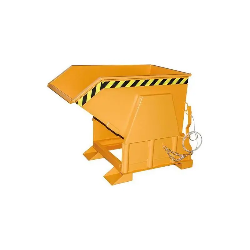 Výklopný kontejner, typ BK (lakovaný podle RAL) - Robustní konstrukce a rolovací mechanismus vhodný pro vysokozdvižný vozík. Deska zásobníku s celoplošným profilem hrany. Robustní základní rám s kapsami pro vjezd. - Příznivé těžiště nákladu S bezpečnostním zařízením proti neúmyslnému sklouznutí a převrácení. Vyklápění je možné v libovolné výšce ze sedadla vysokozdvižného vozíku pomocí táhla. - Lakovaný povrch - Víko (volitelné) Pozinkovaná, otevíratelná ze dvou stran. Kolečka (volitelná, viz příslušenství) lze namontovat dodatečně. Volitelná sada koleček pod kat. č. 3091.1261