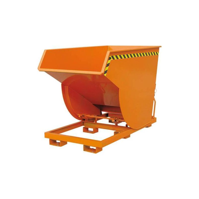 Výklopný kontejner s automatickým odvalováním, RAL 2004 - Pevná konstrukce - ochrana proti poškození Je speciálně navržen pro přepravu těžkých nákladů s užitečným zatížením až 3000 kg. Zachycovač omezuje proces vyklápění pod úhlem 90° a chrání tak kontejner před poškozením. - Automatické zamykání Automatické opětovné uzamčení při opětovném zvednutí zásobníku. - Barva Práškové lakování v barvách RAL 2004 čistě oranžová, RAL 5010 hořcově modrá, RAL 7016 antracitově šedá nebo pozinkovaná.