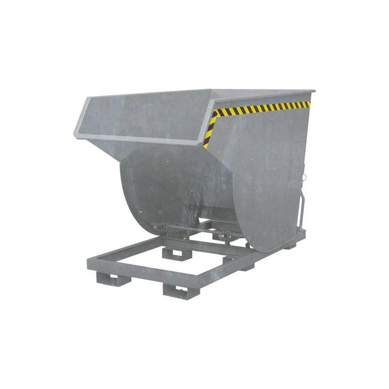Vyklopný kontejner s automatickým odvalováním, pozinkovaný - Pevná konstrukce - ochrana proti poškození Je speciálně navržen pro přepravu těžkých nákladů s užitečným zatížením až 3000 kg. Zachycovač omezuje proces vyklápění pod úhlem 90° a chrání tak kontejner před poškozením. - Automatické zamykání Automatické opětovné uzamčení při opětovném zvednutí zásobníku. - Barva Práškové lakování v barvách RAL 2004 čistě oranžová, RAL 5010 hořcově modrá, RAL 7016 antracitově šedá nebo pozinkovaná.