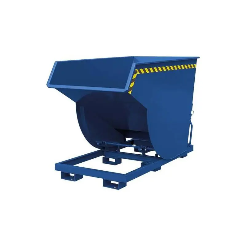 Výklopný kontejner s automatickým odvalováním, RAL 5010 - Pevná konstrukce - ochrana proti poškození Je speciálně navržen pro přepravu těžkých nákladů s užitečným zatížením až 3000 kg. Zachycovač omezuje proces vyklápění pod úhlem 90° a chrání tak kontejner před poškozením. - Automatické zamykání Automatické opětovné uzamčení při opětovném zvednutí zásobníku. - Barva Práškové lakování v barvách RAL 2004 čistě oranžová, RAL 5010 hořcově modrá, RAL 7016 antracitově šedá nebo pozinkovaná.
