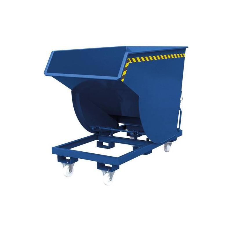 Vyklopný kontejner s válečky, RAL 5010 - Nízká celková výška Ideální pro použití jako pomocná nádoba na strojích. - Perfektní úhel vyklápění, samonavíječ Úplné vyprázdnění beze zbytků. Odemykání kabelem ze sedadla řidiče. - Snadná montáž Speciální profily na spodní vyklápěcí hraně pro snadné postavení do ložné polohy.