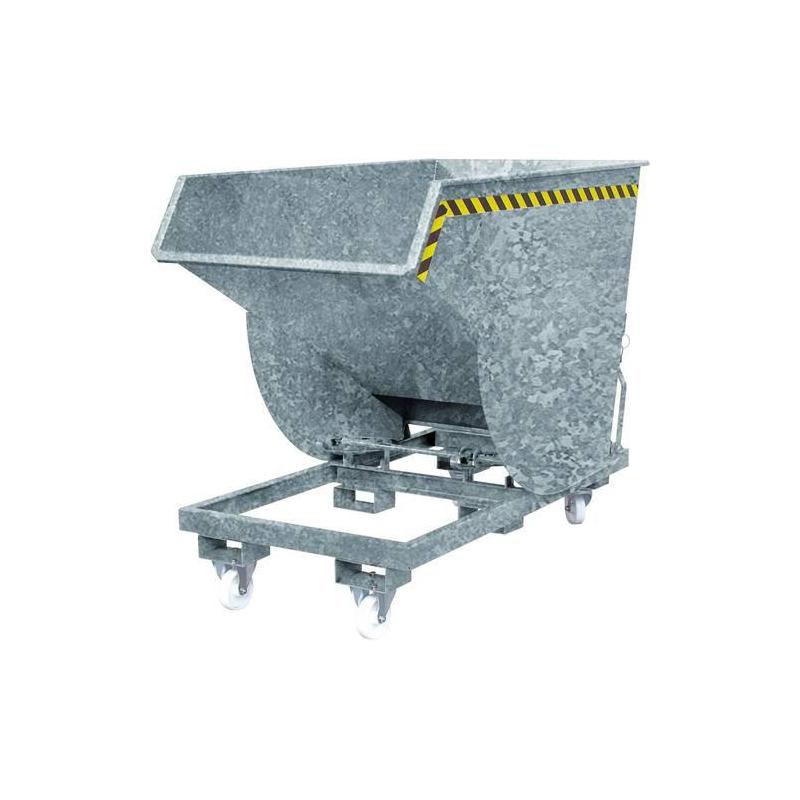 Vyklopný kontejner s válečky, pozinkovaný - Nízká celková výška Ideální pro použití jako pomocná nádoba na strojích. - Perfektní úhel vyklápění, samonavíječ Úplné vyprázdnění beze zbytků. Odemykání kabelem ze sedadla řidiče. - Snadná montáž Speciální profily na spodní vyklápěcí hraně pro snadné vzpřímení do nakládací polohy.