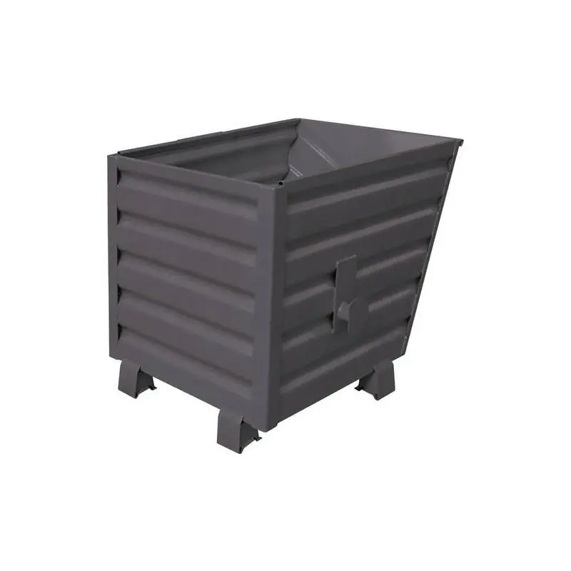 Sklápěcí sklápěč, RAL 7016 - Pro extrémní použití Stohovací sklápěč s bočními stěnami s masivním profilováním je včetně vyklápěcího zařízení určen pro každodenní pracovní použití. - Po naplnění lze stohovat na sebe po třech. Robustní nožičky s drápky zaručují bezpečné uchycení při stohování. - Barva Standardně práškově lakované.
