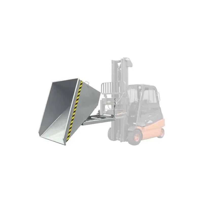 Sklápěč, pozinkovaný - Robustní a odolné Žlab z ocelového plechu o tloušťce 3 mm. Robustní základní rám s kapsami pro vjezd. Nízká celková výška s plochým úhlem sklápění. - Pohodlné samonavíjení Odemykání kabelem ze sedadla řidiče. - Bezpečné. Spolehlivost. Ochrana řetězu proti nechtěnému sklouznutí z hrotů. - Příslušenství Sada kol a víko jsou k dispozici na vyžádání.