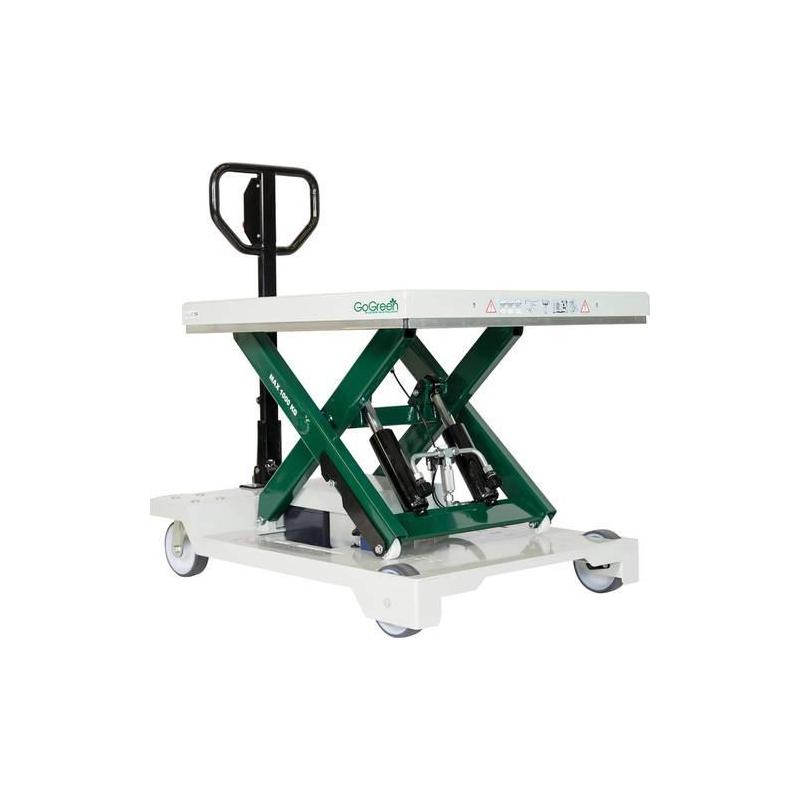 Zvedací plošinový vozík - Hladký chod a všestrannost Lze je použít všude tam, kde je třeba zvedat, montovat nebo přepravovat břemena. Snadné manévrování. - Pro bezpečnou práci v různých pracovních výškách. Splňuje normu EN ISO 3691-5:2014. Ovládací a provozní zařízení 12 V DC s vypínačem mrtvého muže. Ochranná vzdálenost svorky mezi všemi pohyblivými částmi. S ochranou proti přetížení. Plynulé spouštění. S jedním střihem, akumulátorem 12 V/28 Ah s integrovanou nabíječkou